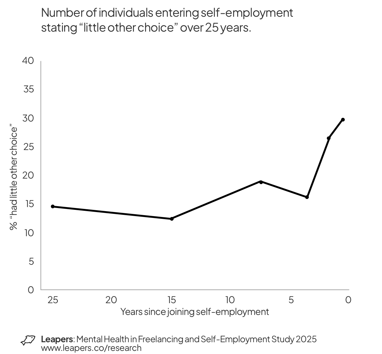 The absence of mental health support is most acute in the first two years of self-employment – exactly when people are most exposed and least buffered.